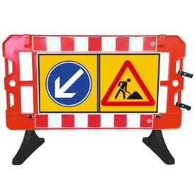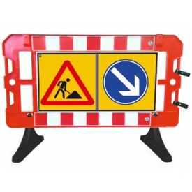 Bariera lucrari cu indicatoare drum in lucru si ocolire stanga, 1500x1000 mm, 12.5 kg