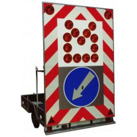 Remorca semnalizare si dirijare trafic cu panou pliabil 1400x2500 mm si 16 lampi LED