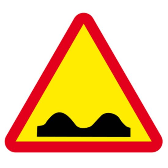 Aceste indicatoare rutiere, se întâlnesc de regulă pe sectoarele de drum pe care se execută lucrări. În acest caz, conducătorii auto sunt avertizați că urmează un sector de drum cu denivelări.