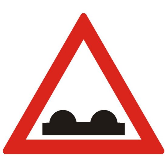 Indicator de avertizare A17 drum cu denivelari 700 mm folie reflectorizanta clasa 1 otel vopsit se amplasează la 50-200 m de locul periculos. Dacă lungimea sectorului de drum depăşeşte 0,3 km, indicatorul este insoţit de un panou adiţional pe care este specificată lungimea sectorului de drum cu denivelări. La întâlnirea acestui indicator conducătorii auto sunt obligaţi să reducă viteza.