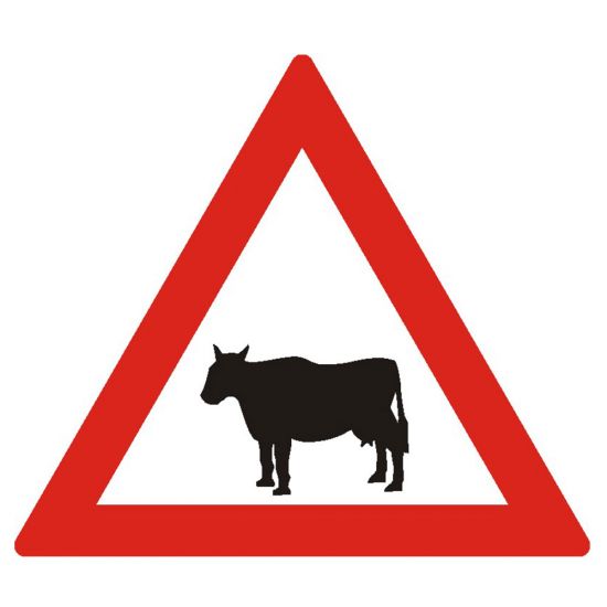 Indicator de avertizare A25 animale domestice 700 mm folie reflectorizanta clasa 1 otel vopsit se montează la 100-200 m de sectorul de drum periculos, unde exista riscul ca animalele să traverseze sau să circule pe drumul public. La întâlnirea acestui indicator, Conducătorul auto este obligat sa reducă viteza şi să circule cu atenţie sporită.