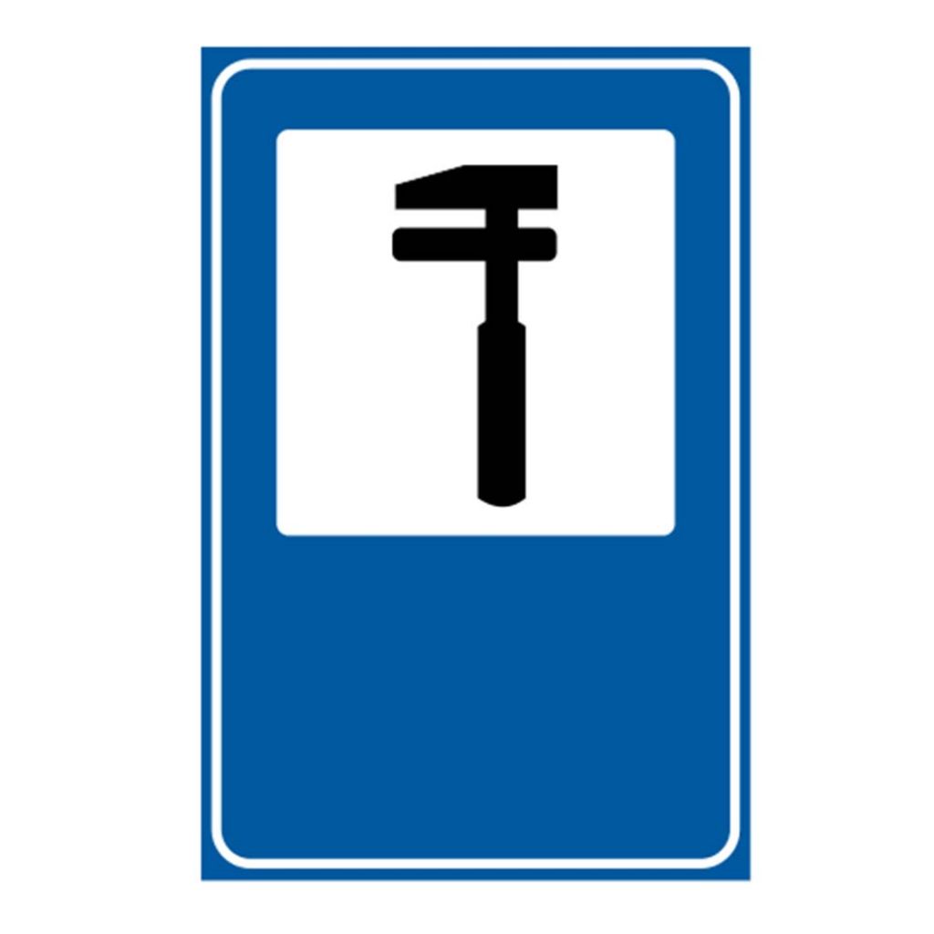 Aceste indicatoare rutiere se întâlnesc în apropierea unui service auto. Pe indicatoare poate fi înscris și programul de funcționare.
