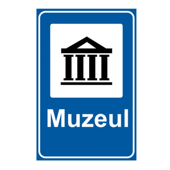 Indicator de informare G57 muzeu 650x500 mm folie reflectorizanta clasa 1 otel vopsit indicatorul din imaginea alăturată, se amplasează în apropierea unui muzeu.