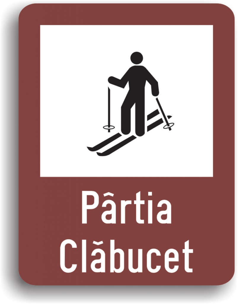 Indicator de informare turistica T9 partie schi 650x500 mm folie reflectorizanta clasa 1 otel vopsit aceste indicatoare rutiere de informare turistică, se adresează conducătorului de vehicul, informându-l că prin apropiere există o pârtie de schi.