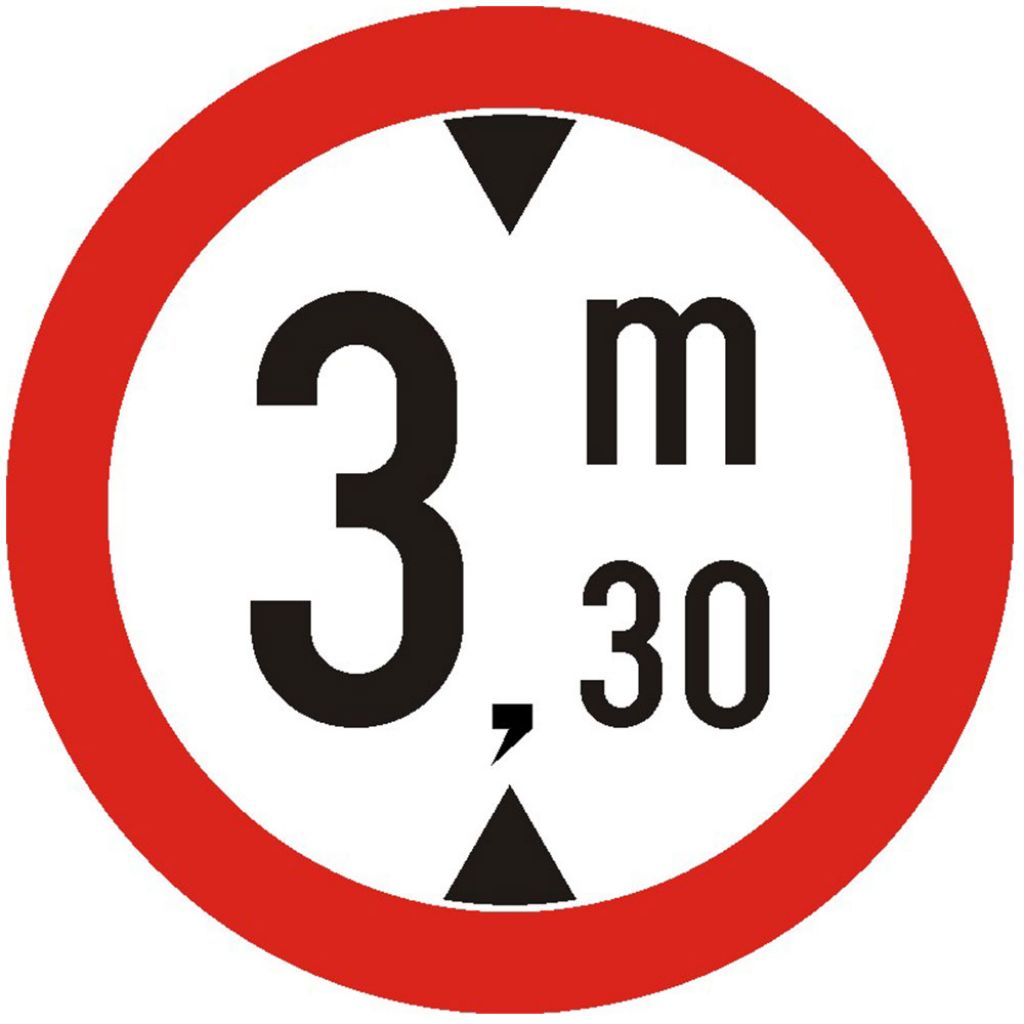 Indicator de interzicere sau restrictie C17 accesul interzis vehiculelor cu inaltimea mai mare de 600 mm folie reflectorizanta clasa 1 otel vopsit se monteaza pe sectorul de drum cu inaltime mai mica de 5,10 m (capetele podurilor, pasaje inferioare, etc.), precum si in intersectia care il precede. In cel de-al doilea caz, indicatorul este insotit de un panou aditional pe care este precizata distanta pana la locul periculos. Inaltimea inscrisa pe indicator este cu 5 cm mai mica decat inaltimea de libera de trecere asigurata pe sectorul de drum respectiv.