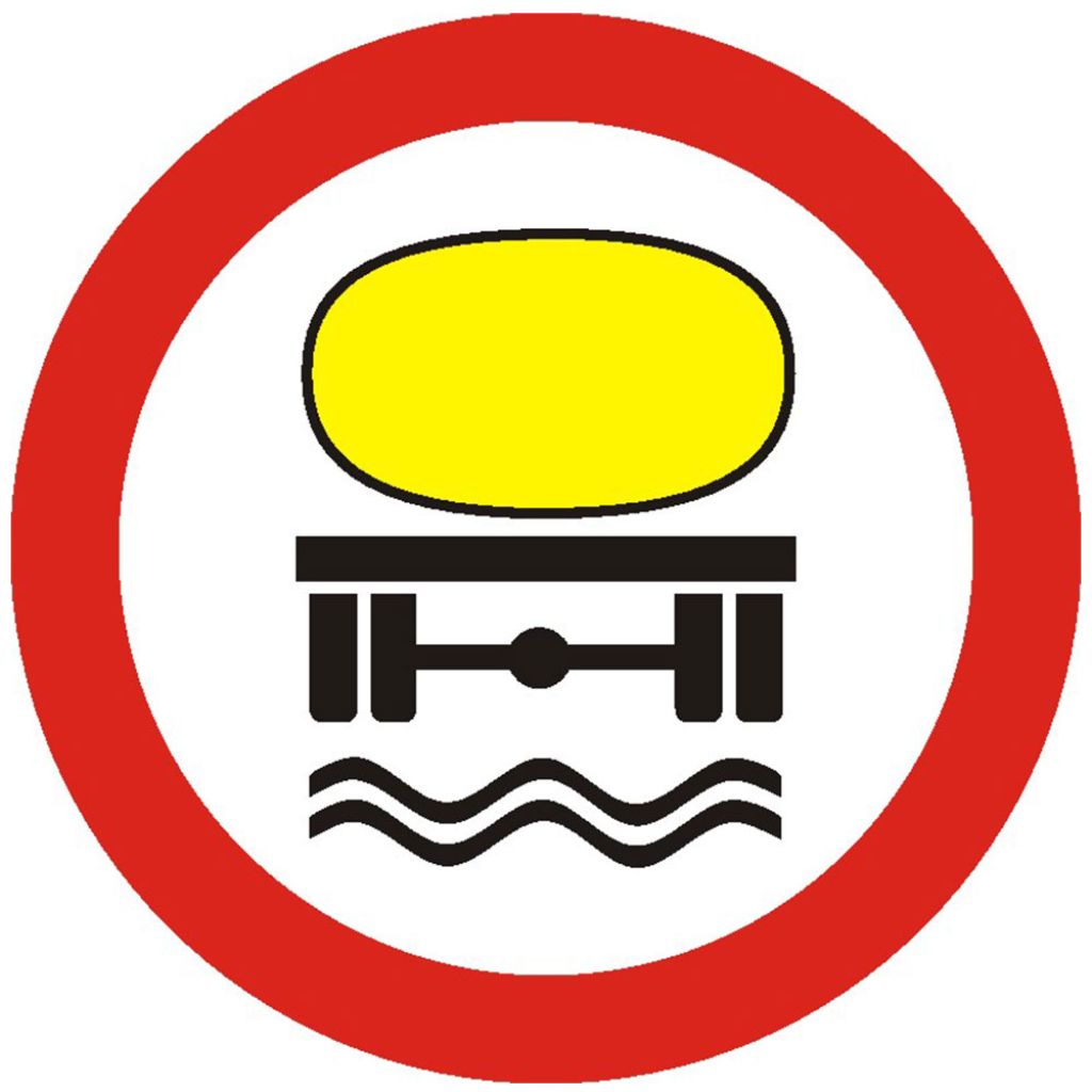 Indicator de interzicere sau restrictie C44 accesul interzis vehiculelor care transporta substante de natura sa polueze apele 600 mm folie reflectorizanta clasa 1 otel vopsit la intalnirea acestui indicator accesul vehiculelor care transporta substante de natura sa polueze apele este interzis.