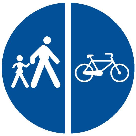 circulatia pietonilor si a bicicletelor se va face conform delimitarii indicatorului (dreapta sau stanga)