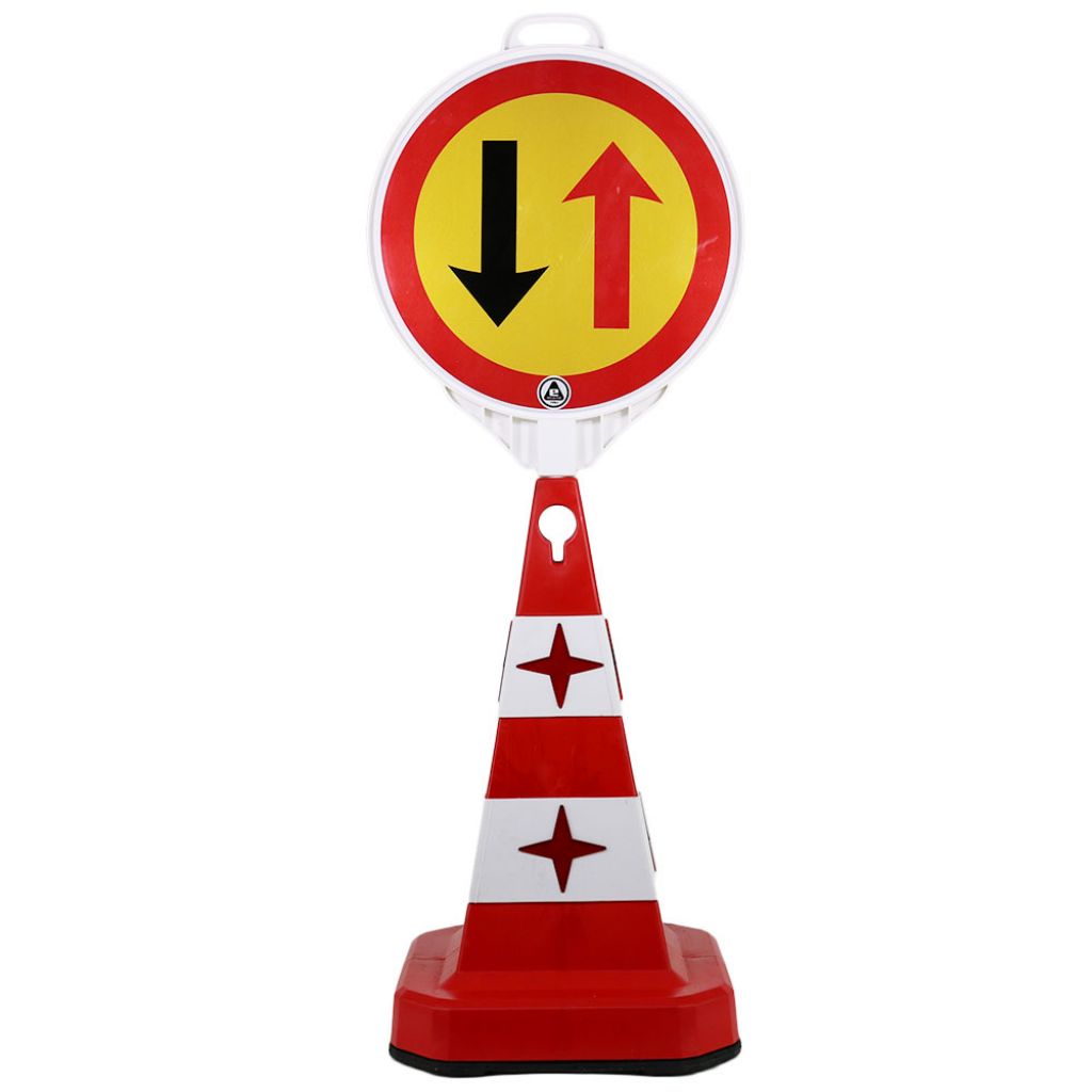 Kit format din un con rutier cu inaltime de 600 mm si un indicator din plastic de prioritate pentru circulatia din sens invers.