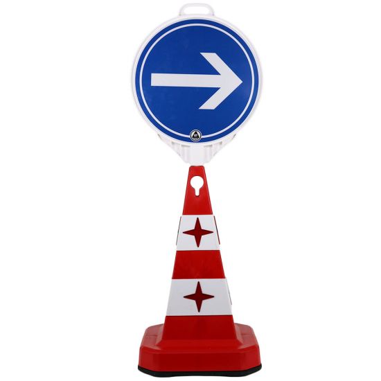 Kit format din un con rutier cu inaltime de 600 mm si un indicator din plastic pentru obligatoriu stanga/dreapta, fata-verso.