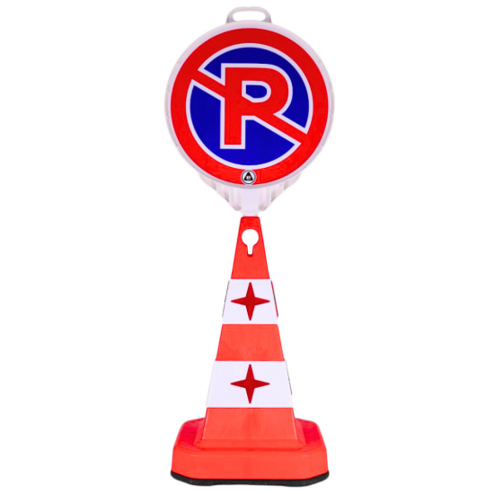 Kit format din un con rutier cu inaltime de 600 mm si un indicator din plastic pentru interzicerea parcarii.