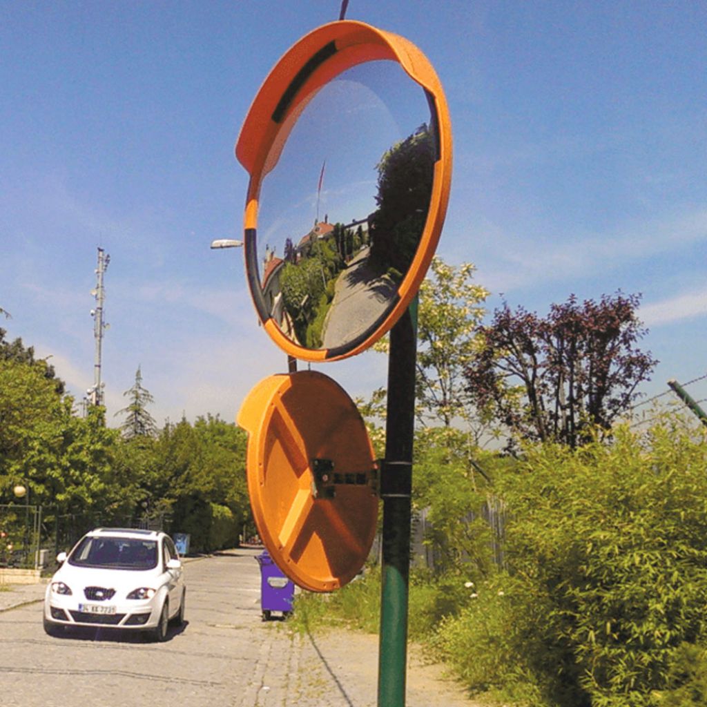 - Oglinda rutiera rotunda 600 mm este confecționată din acril, un material cu o rezistentă la impact mai mare cu 70% decât sticlă. Oglinda poate fi fixată pe stâlpi (diam. 50-85mm), semafoarele sau pe indicatoarele de trecere de pietoni.