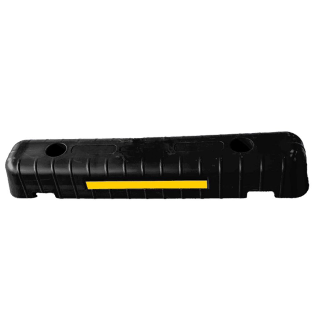 Acest opritor de roata este confectionat din material plastic colorat in masa. Materialul se aditiveaza cu aditivi speciali, in scopul cresterii rezistentei produsului la actiunea factorilor de mediu si mentinerea durabilitatii culorii.