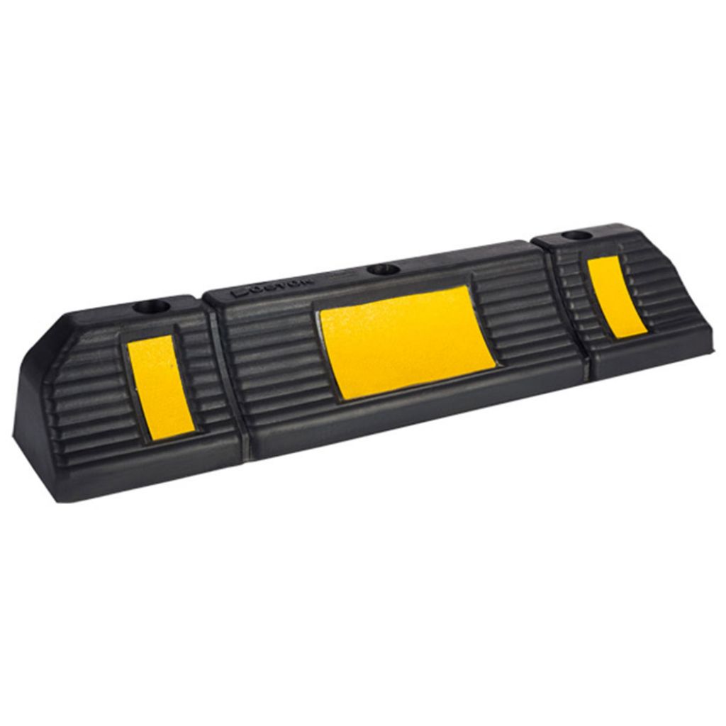 Materialul din care este confecționat acest opritor este cauciuc vulcanizat de culoare neagră cu pelicule reflectorizante galbene.