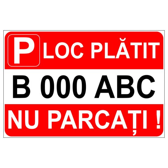 Placuta indicatoare parcare, loc platit, nu parcati, 200x300 mm, PVC, 1 mm