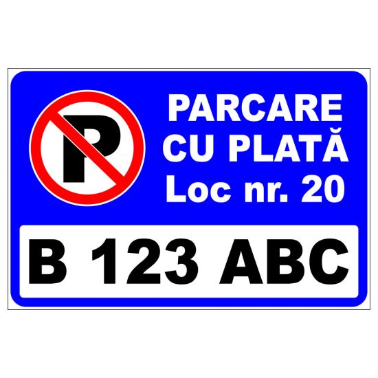 Placuta indicatoare parcare, parcare cu plata, loc nr., 200x300 mm, PVC, 1 mm