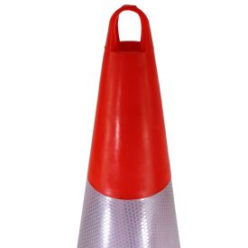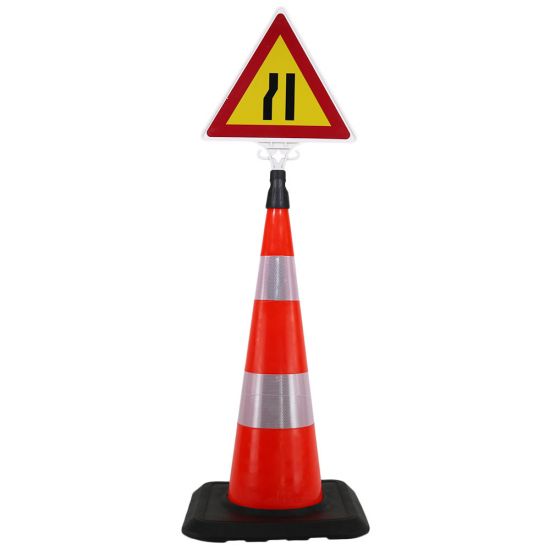 Pachet format din un con rutier cu inaltime de 900 mm si un indicator din plastic pentru drum ingustat pe partea stanga.
